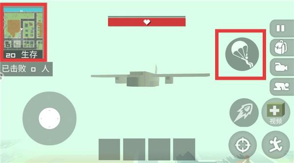 3、观察小地图选择降落地点,达到地点上空后,点击降落伞图标即可。