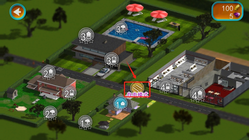 1、在游戏主界面,点击中间 “自由模式” 按钮,进入自由探索玩法。