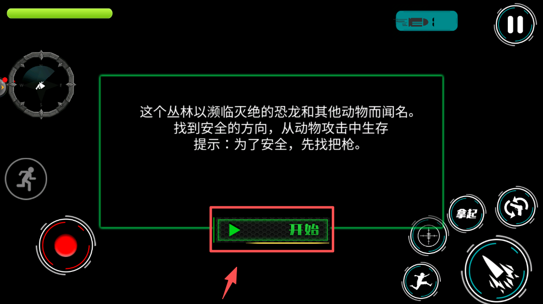 3、阅读游戏提示,点击“开始”按钮开始生存挑战。