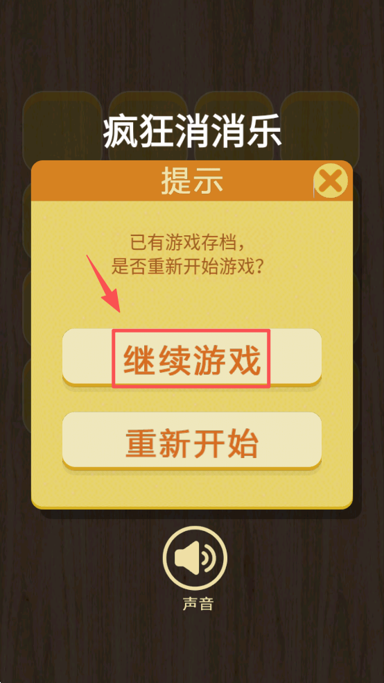 3、当提示已有游戏存档时,选择“继续游戏”以接续进度。