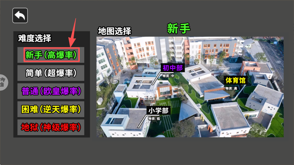 2、在难度选择界面,选择适合你的难度级别,如“新手高爆率”。
