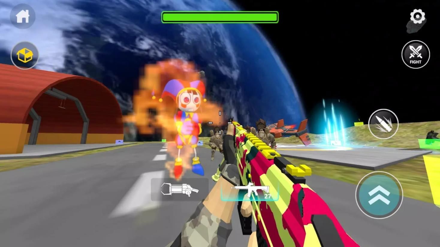 1、在游戏中进行枪战射击冒险,在场景中灵活走位并精准射击。