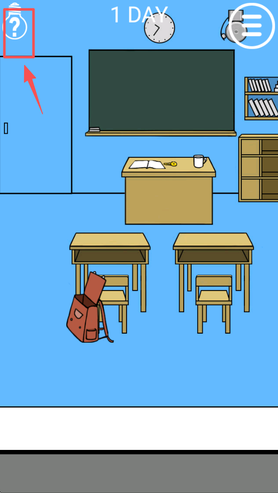 4、当老师不在课堂,点击左上角的问号图标,寻找逃课路线。