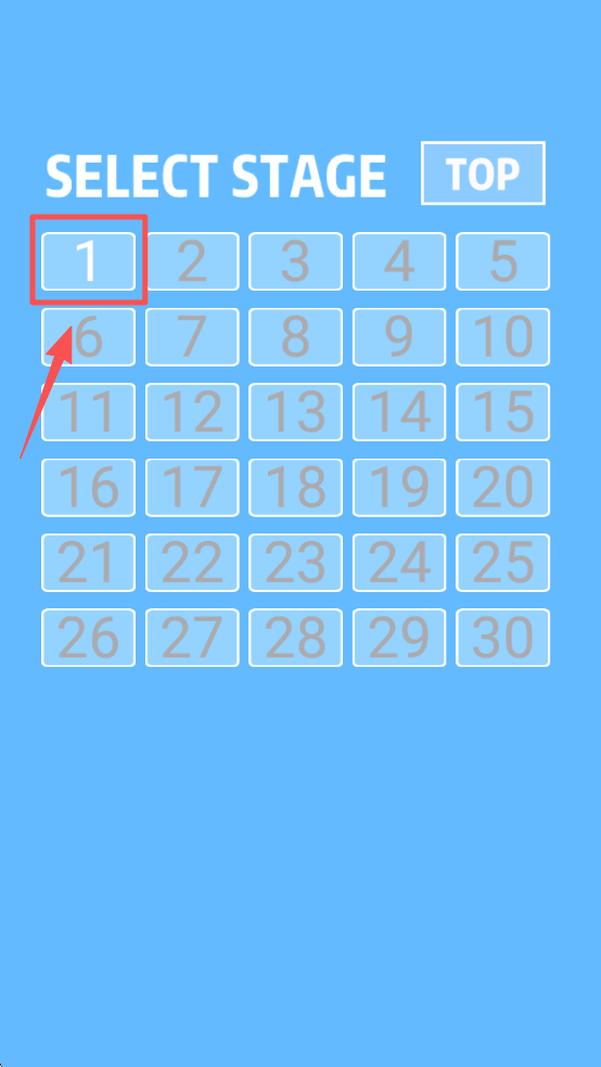 2、在关卡选择界面,点击数字“1”选择第一关开始游戏。