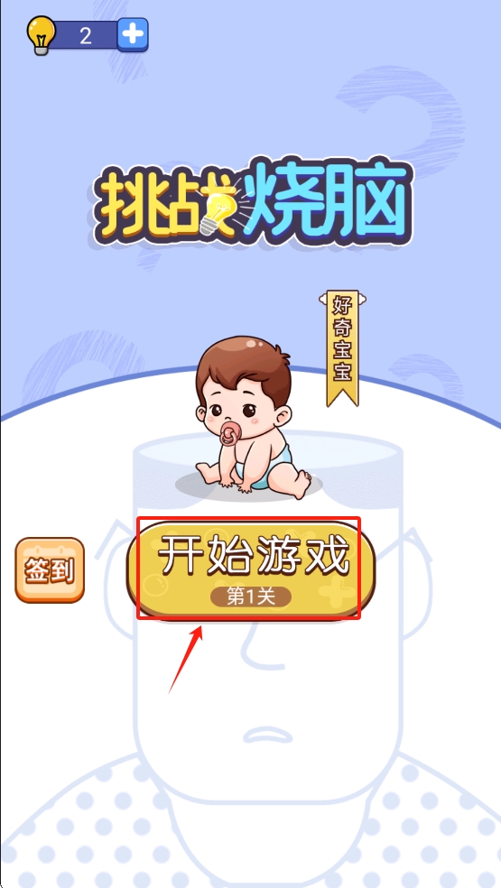 2、返回主页点“签到”,再按“开始游戏”进入第1关。