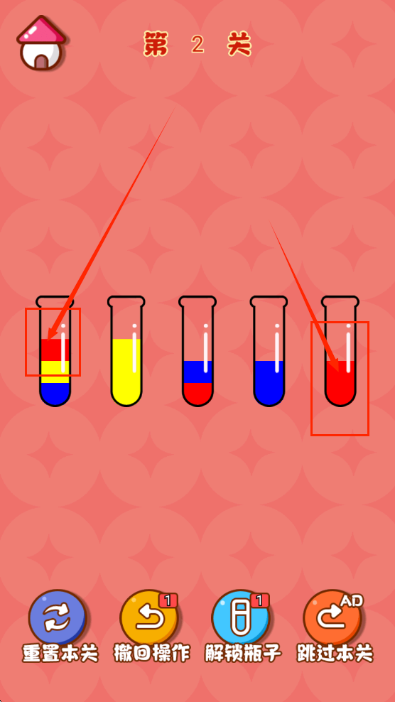 3、点击倾倒操作,通过简单点击完成液体转移,每一步操作都需谨慎,避免失误导致卡关。