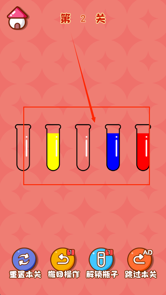 3、将所有颜色的溶液都倒在一个试管里即通关成功。