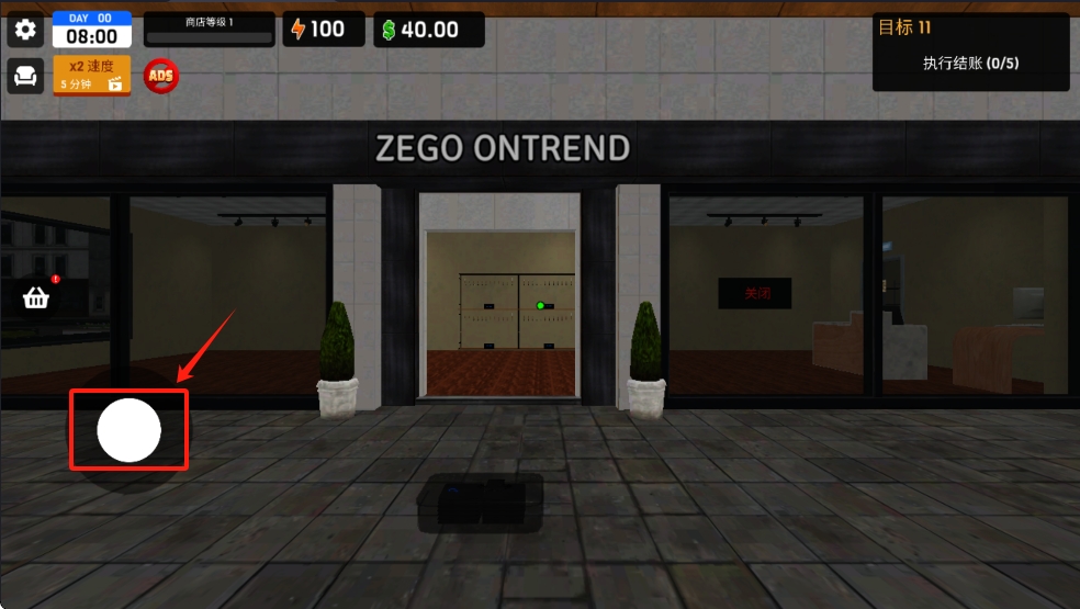 1、在商店门口,长按方向控制按钮,左右滑动可控制角色移动。