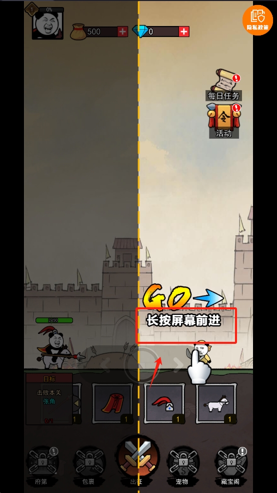 2、长按屏幕控制角色前进,探索古代世界,寻找宝藏和秘密,体验冒险乐趣。