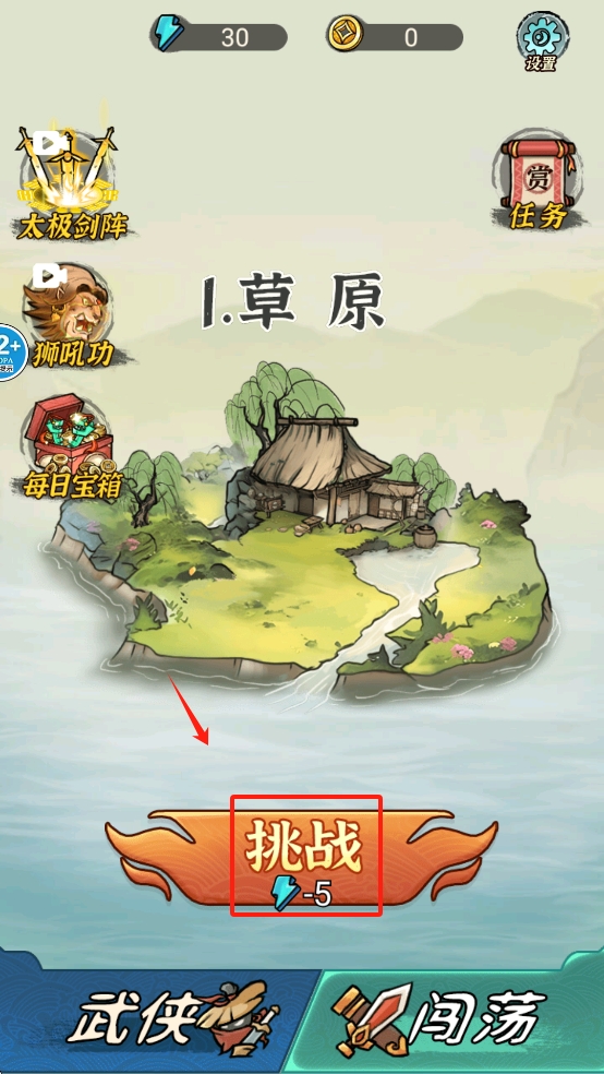 1、选择关卡,点击 “挑战” 按钮,消耗体力开始冒险。