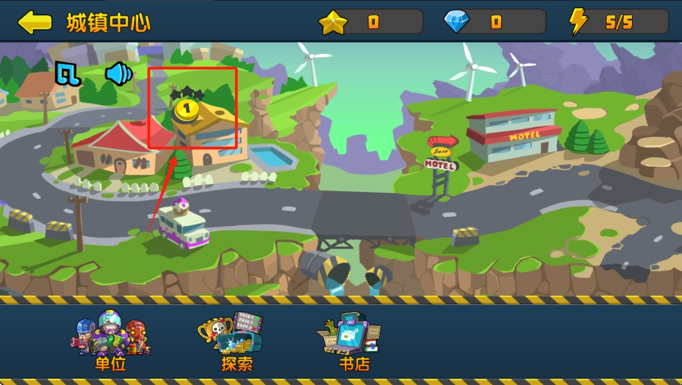 1、在主界面点击“城镇中心”,选择并进入游戏关卡。