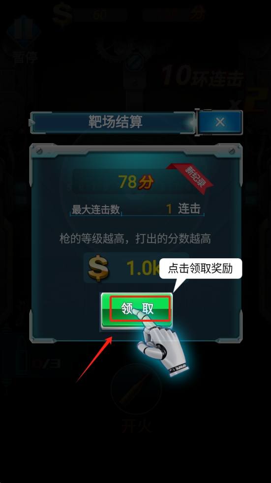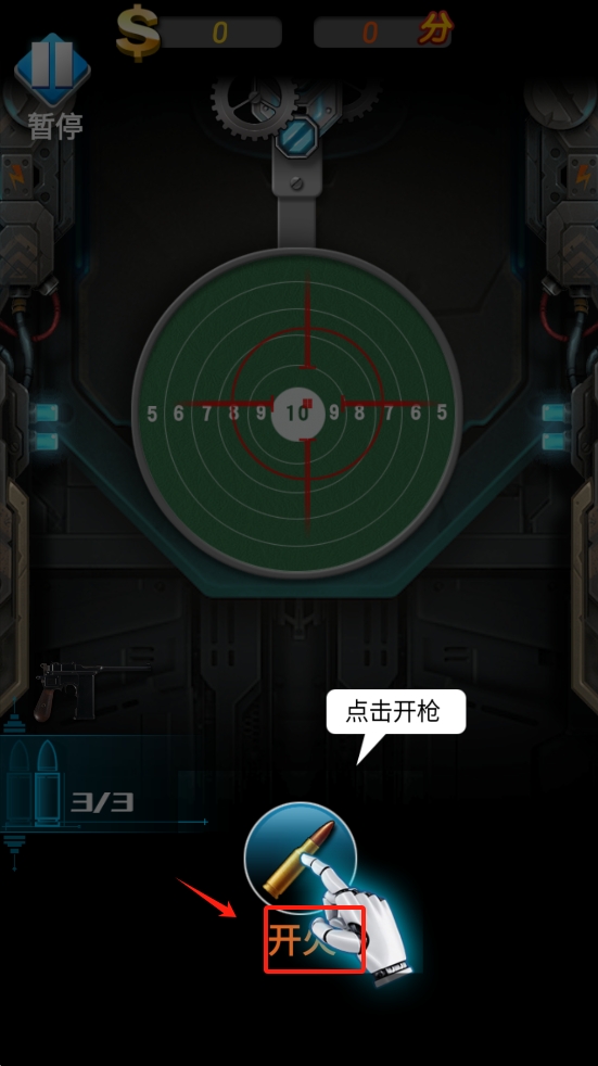 2、在靶场界面,点击下方“开火”按钮,进行射击训练。