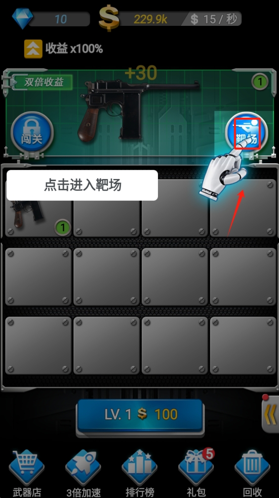 1、进入游戏主界面,点击右上角“靶场”按钮,进入射击训练界面。