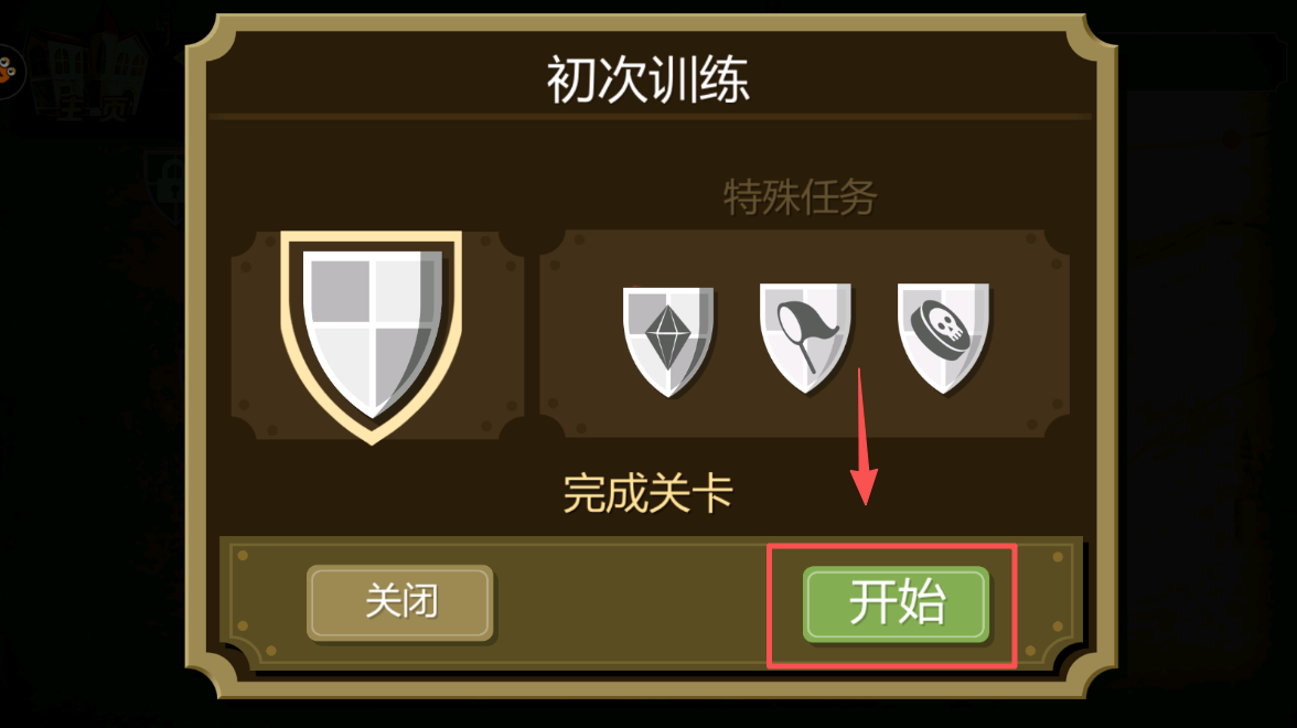 2、在初次训练界面,点击绿色 “开始” 按钮,开启训练关卡。
