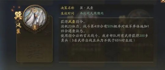 关键词一:第四回合有50%的概率对敌军单体施加遇袭一回合!