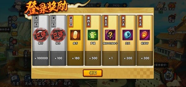 ①每日分享:每天登录第一句,先给好友分享游戏,每日首次分享游戏,即可获得10金币,另外每周首次分享忍法帖,还可额外获得10金币奖励哟。