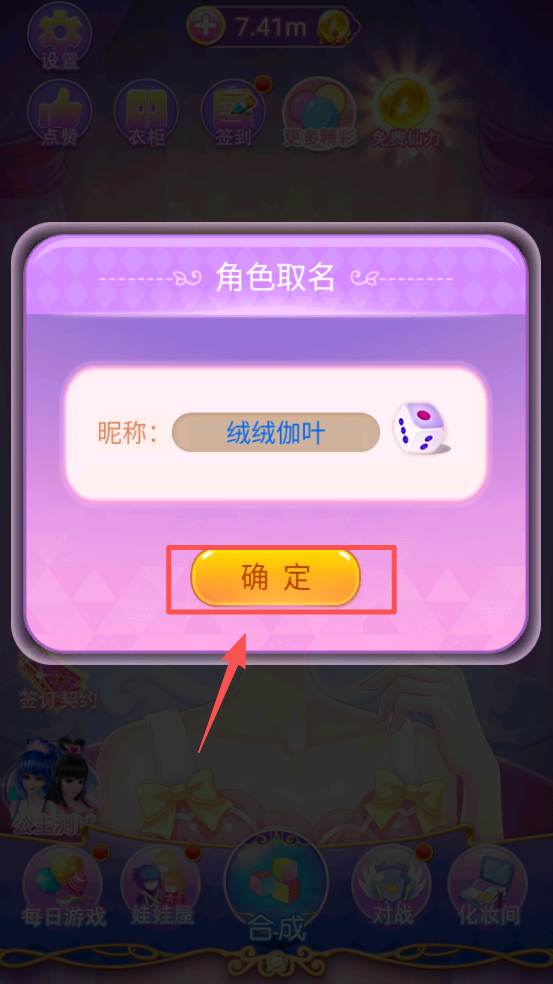 3、输入昵称并点击“确定”按钮,创建你的角色并开始游戏。