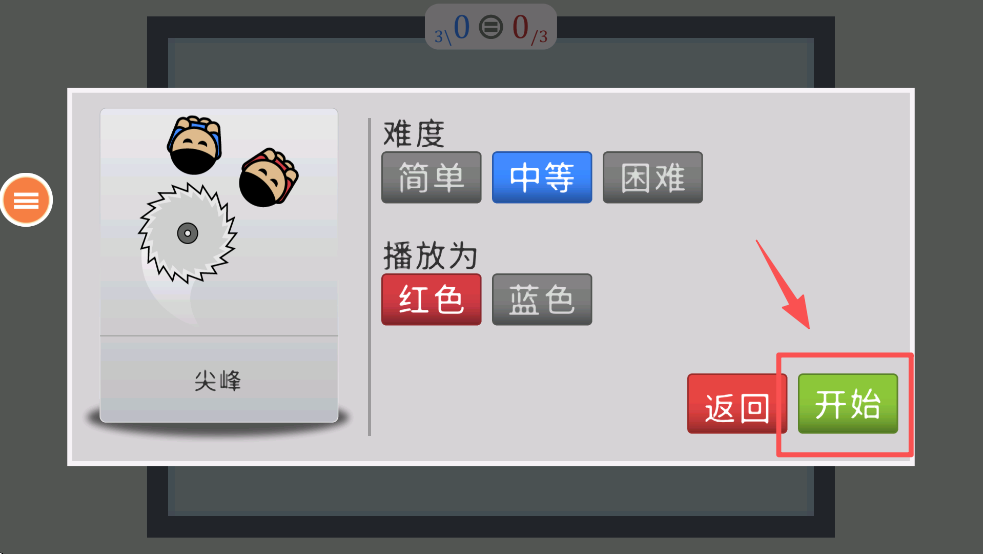 3、选择游戏难度和颜色,点击“开始”按钮,进入游戏对决。