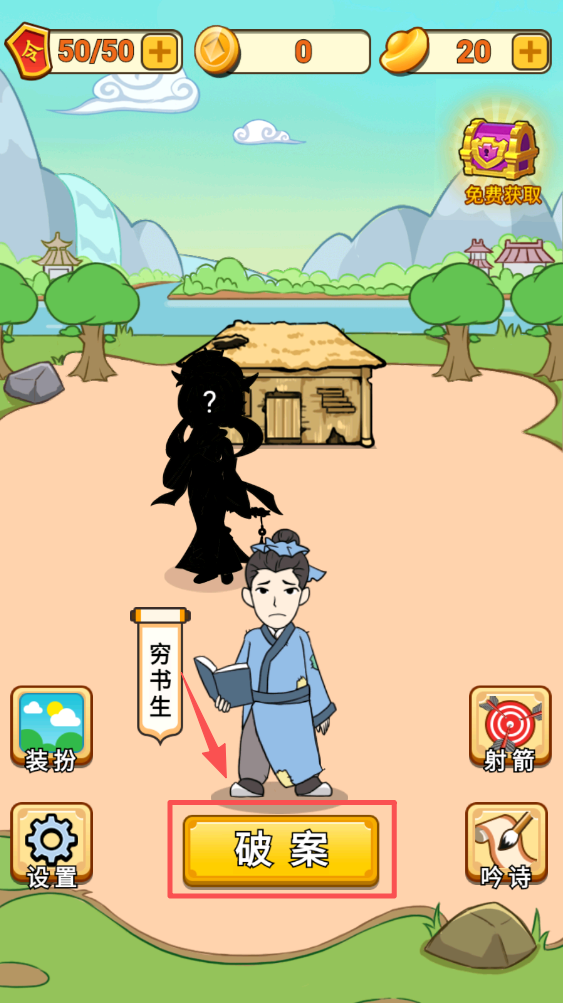 1、点击“破案”按钮开始游戏,进入案件解决环节,这是提升角色地位的起点。