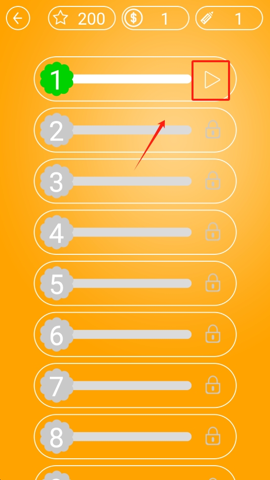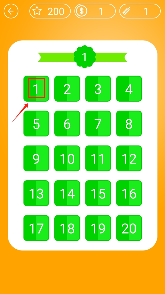 2、看左上角“☆200”,点击“关卡1”,确认关卡与奖励信息。