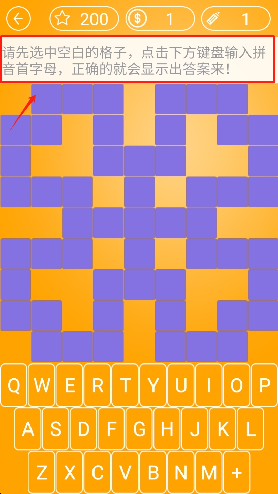 3、在关卡列表点“1”开始游戏,进入游戏页面,准备挑战。