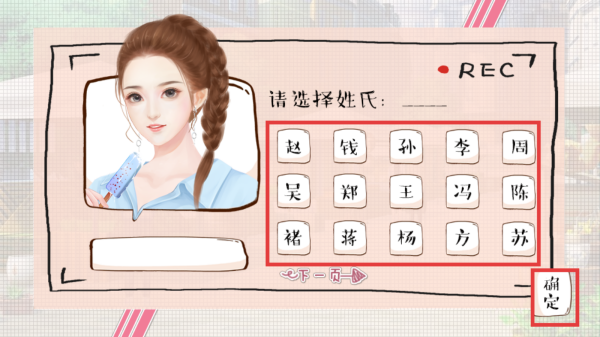 2、点击选择文字为主角取名,完成后点击【确定】。