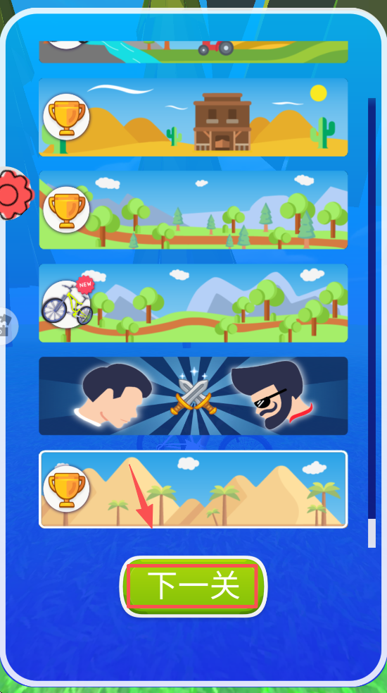 3、在主界面,选择你想要挑战的关卡,点击“下一关”按钮,进入比赛。