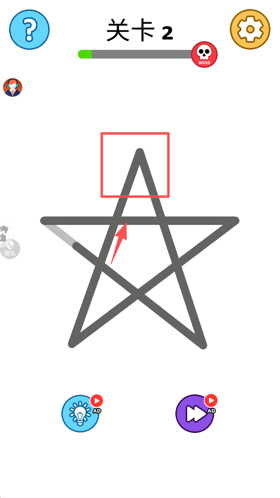 3、在关卡2中,观察五角星图形,仔细观察,灵活连接指定图案完成关卡。