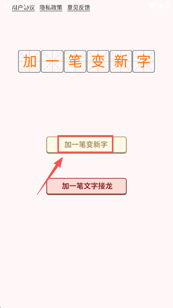 1、点击“加一笔变新字”按钮,进入游戏界面,准备开始挑战。