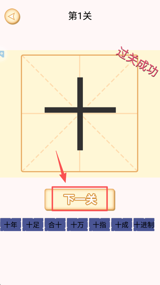 3、完成第一关后,点击“下一关”按钮,进入下一阶段挑战。