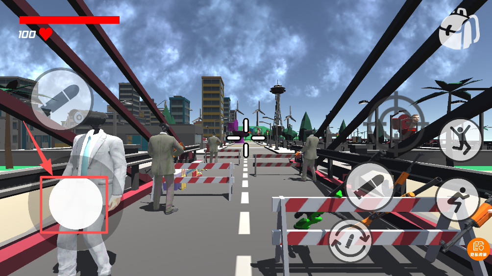 1、使用左下角的虚拟摇杆控制角色移动,探索游戏环境。
