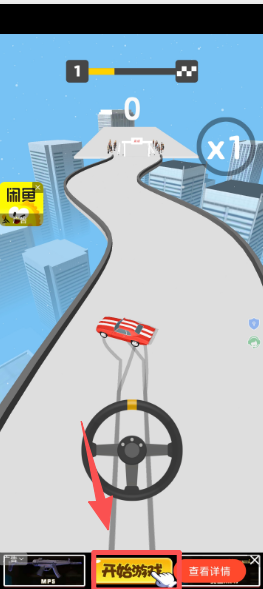 1、点击屏幕上的方向盘图标,开始游戏,进入紧张刺激的赛车挑战。