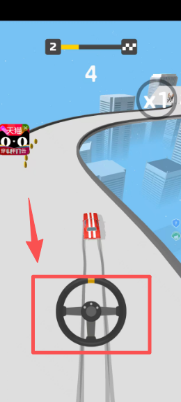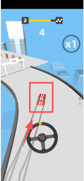 2、通过滑动屏幕下方的方向盘控制赛车方向,掌握好时机进行漂移过弯。