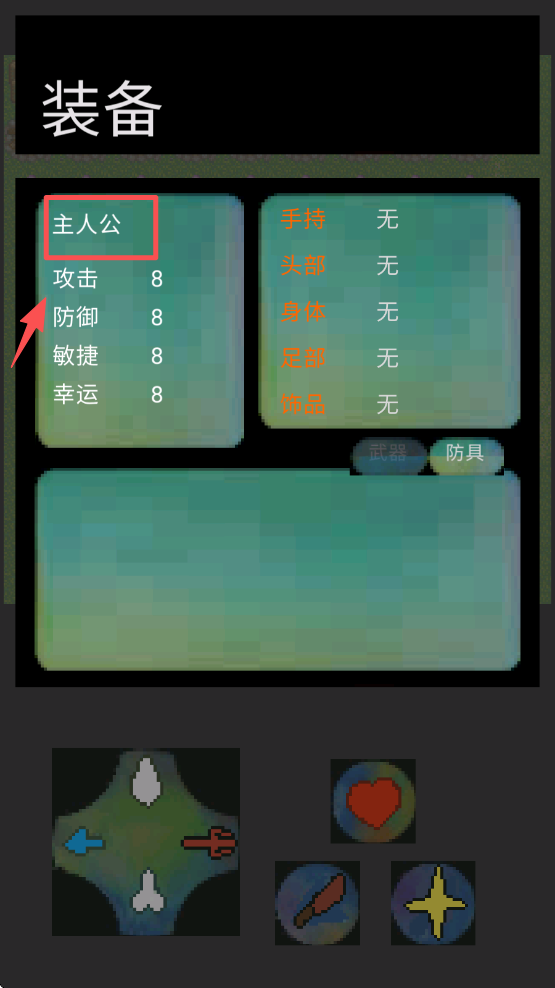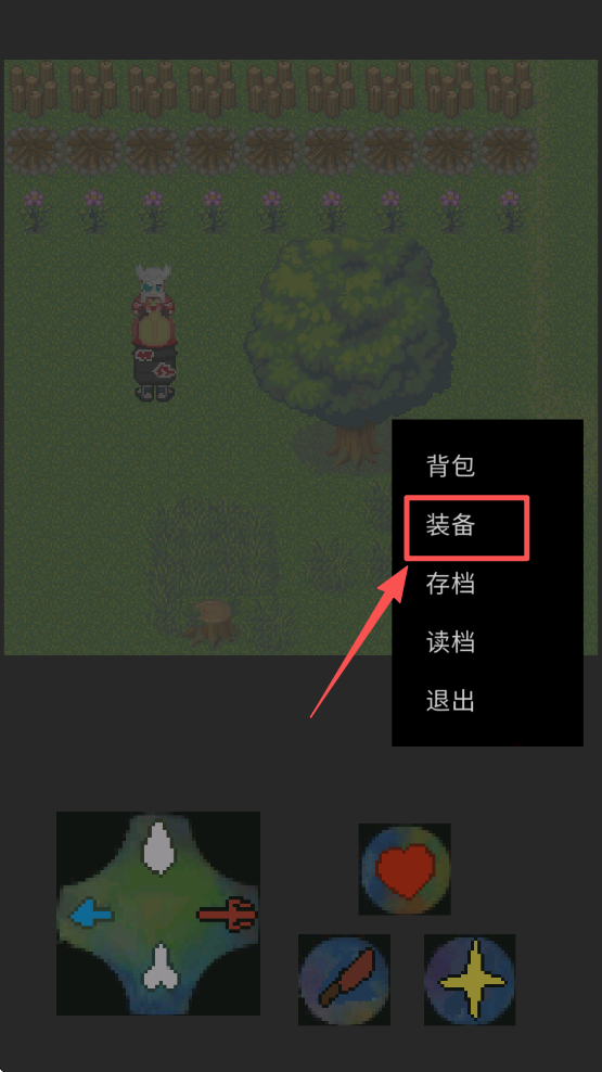3、点击屏幕右侧的菜单按钮,选择“装备”查看和更换你的装备。