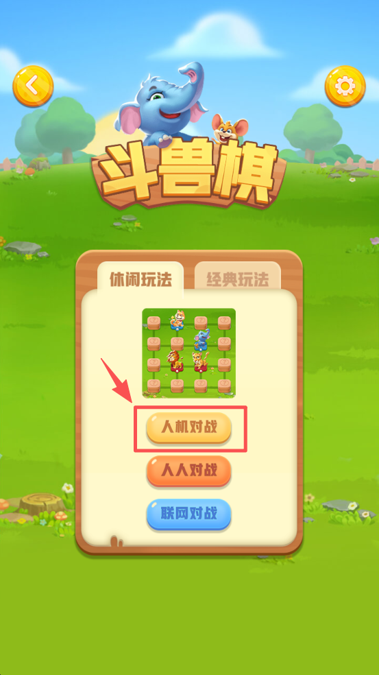 2、在玩法选择页面,点击 “人机对战” 按钮,进入对战准备界面。