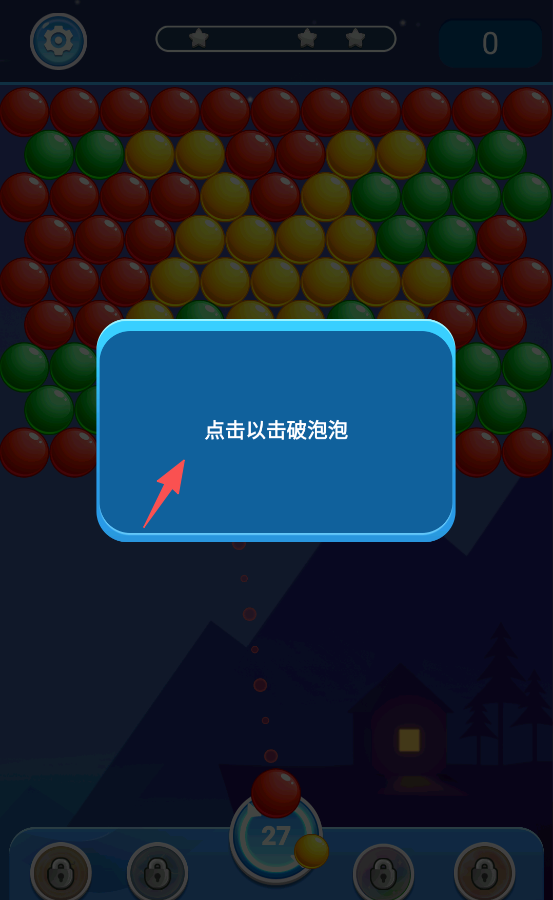 2、根据提示,点击屏幕击破同色泡泡。