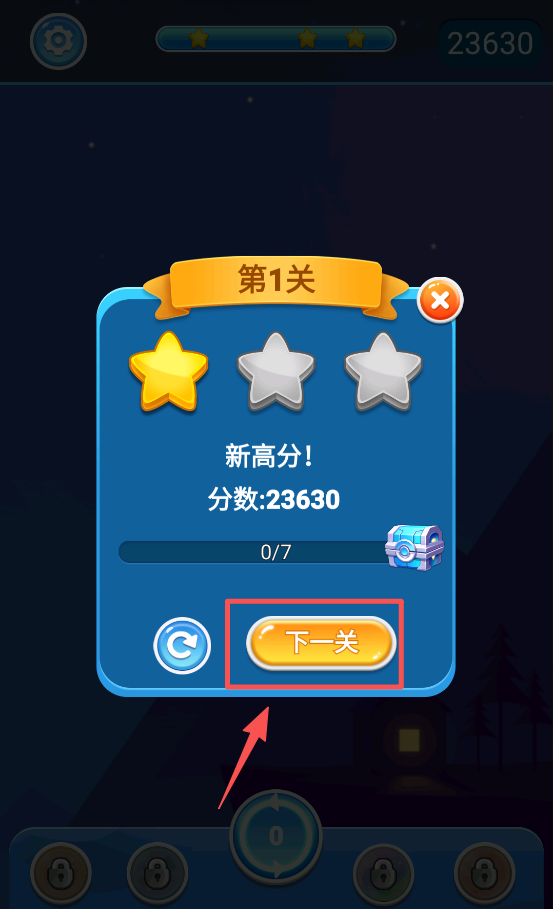 4、关卡结束后,点击 “下一关” 按钮,继续挑战下一关。