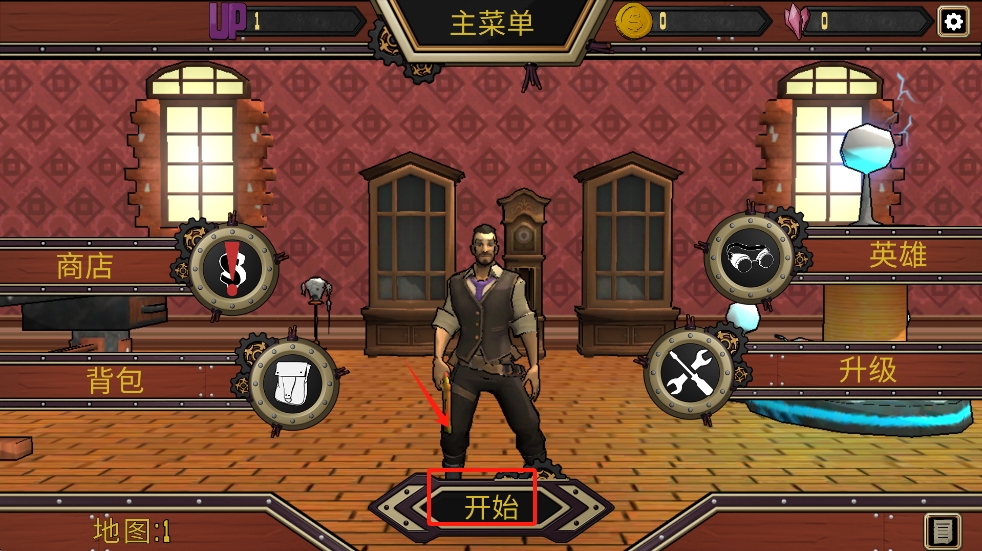 2、在主菜单中点击“开始”按钮,进入游戏关卡。
