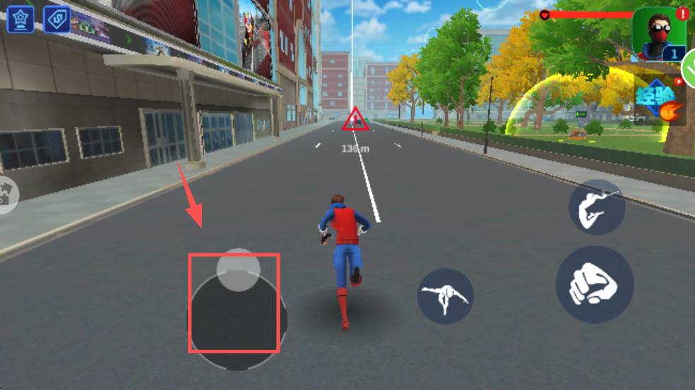 2、使用虚拟摇杆控制角色在街道上移动,探索城市,寻找任务目标。
