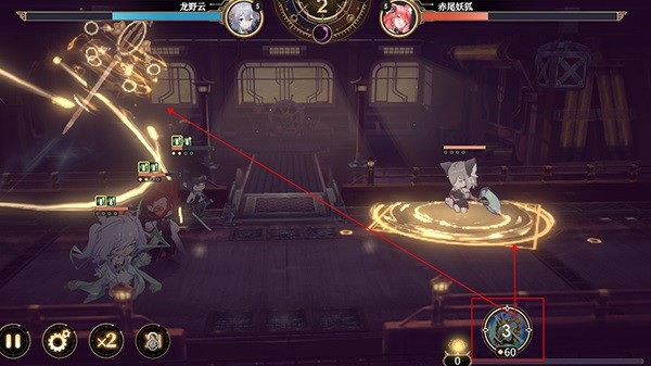 玩家在完成任务的过程中会触发战斗,在进入战斗后玩家可以点击左下角的齿轮,让英雄自动战斗,还可以点击倍速按钮,加快战斗速度。