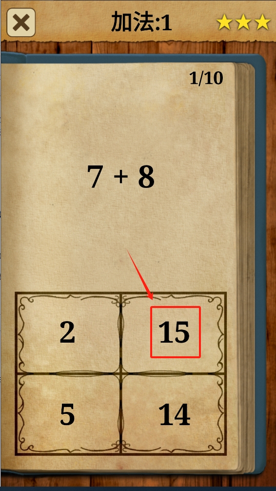 3、选择正确答案,如15。,完成当前关卡。