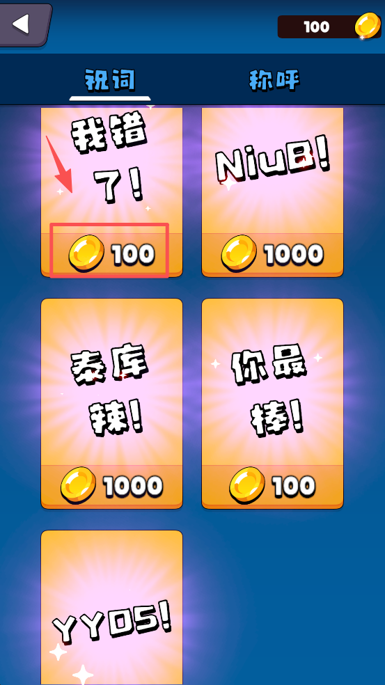3、选择一个祝词,点击“我错了!”送出祝福,增加互动。
