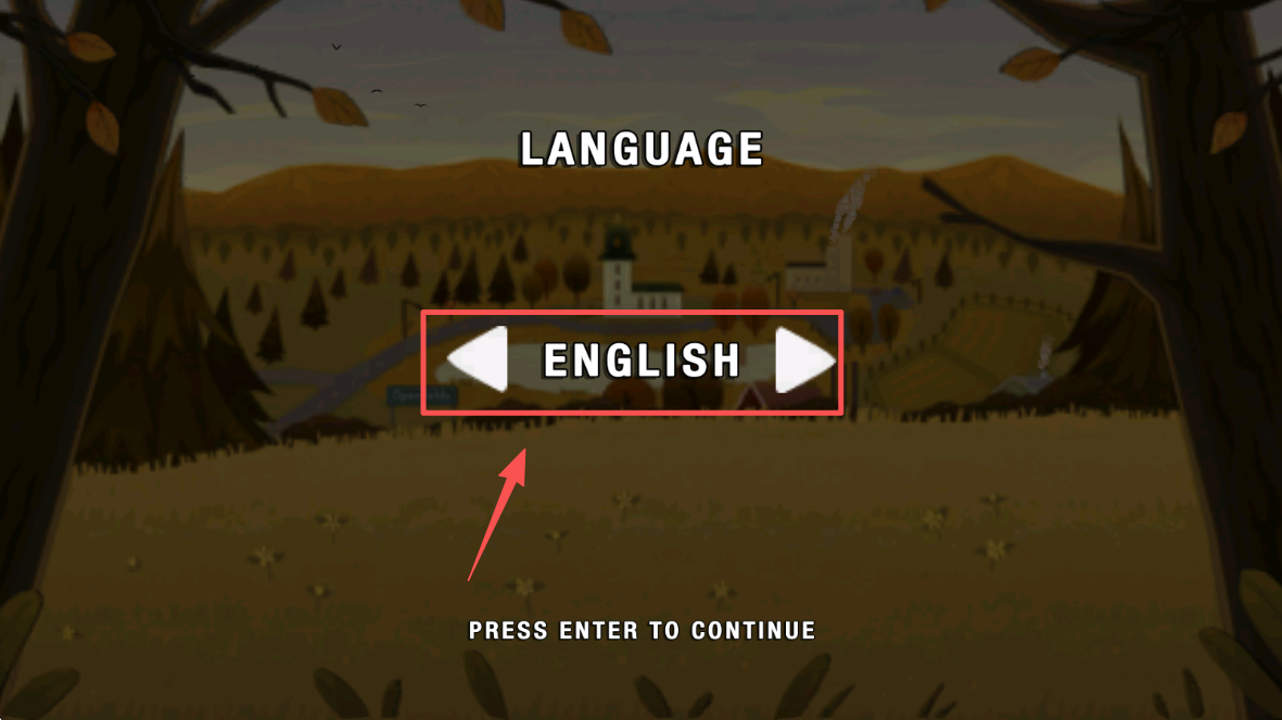 1、在语言选择界面,使用左右箭头键选择“ENGLISH”,然后按回车键确认,继续游戏。