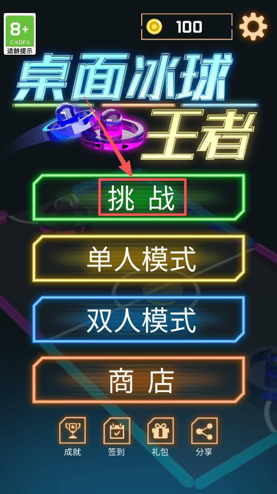 1、点击“挑战”按钮,进入游戏模式选择界面,开始你的游戏之旅。