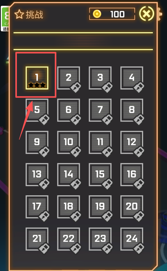 2、选择关卡难度,点击第一个关卡“1”开始挑战,逐步提升你的技能。
