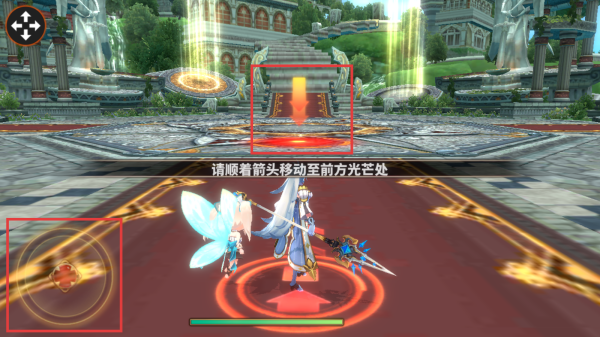 2、拖动轮盘操控角色行走,根据指引移动至光芒处。