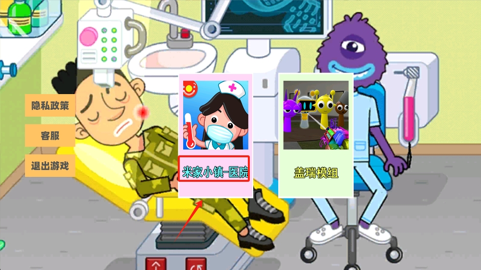 1、点击“米家小镇-医院”图标,选择游戏模式。