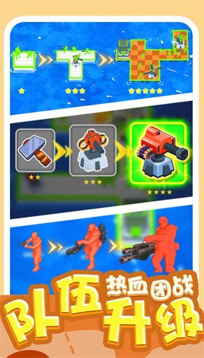 《炮灰敢死队》是一款十分精彩的射击类经营闯关游戏。在游戏中,玩家需要控制自己的士兵,击败敌人,收集资源,建造军营,提升自己的实力,最终成为一支强大的团队。游戏氛围紧张刺激,十分有趣。