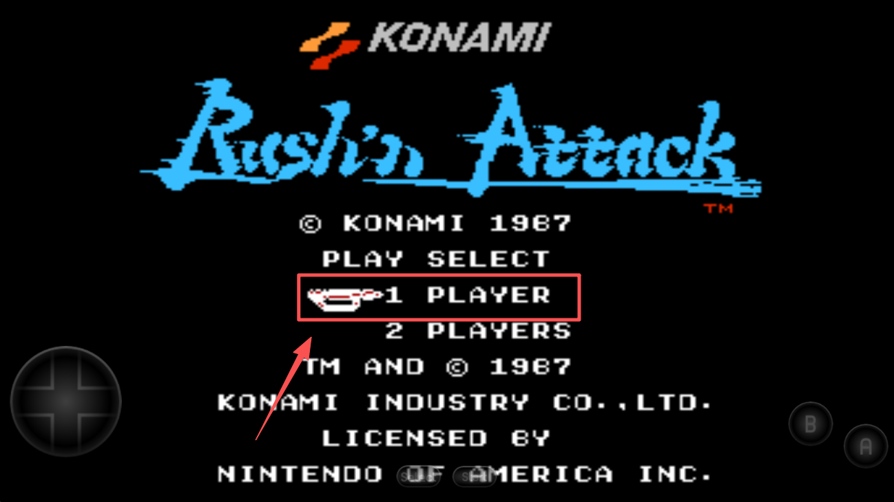 1、在标题界面选择“1 PLAYER”开始单人游戏模式。