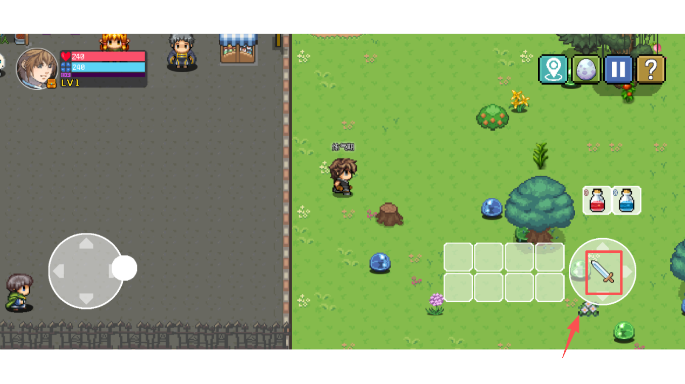 4、最后,点击屏幕右下角的剑形图标,使用武器攻击敌人或采集资源。
